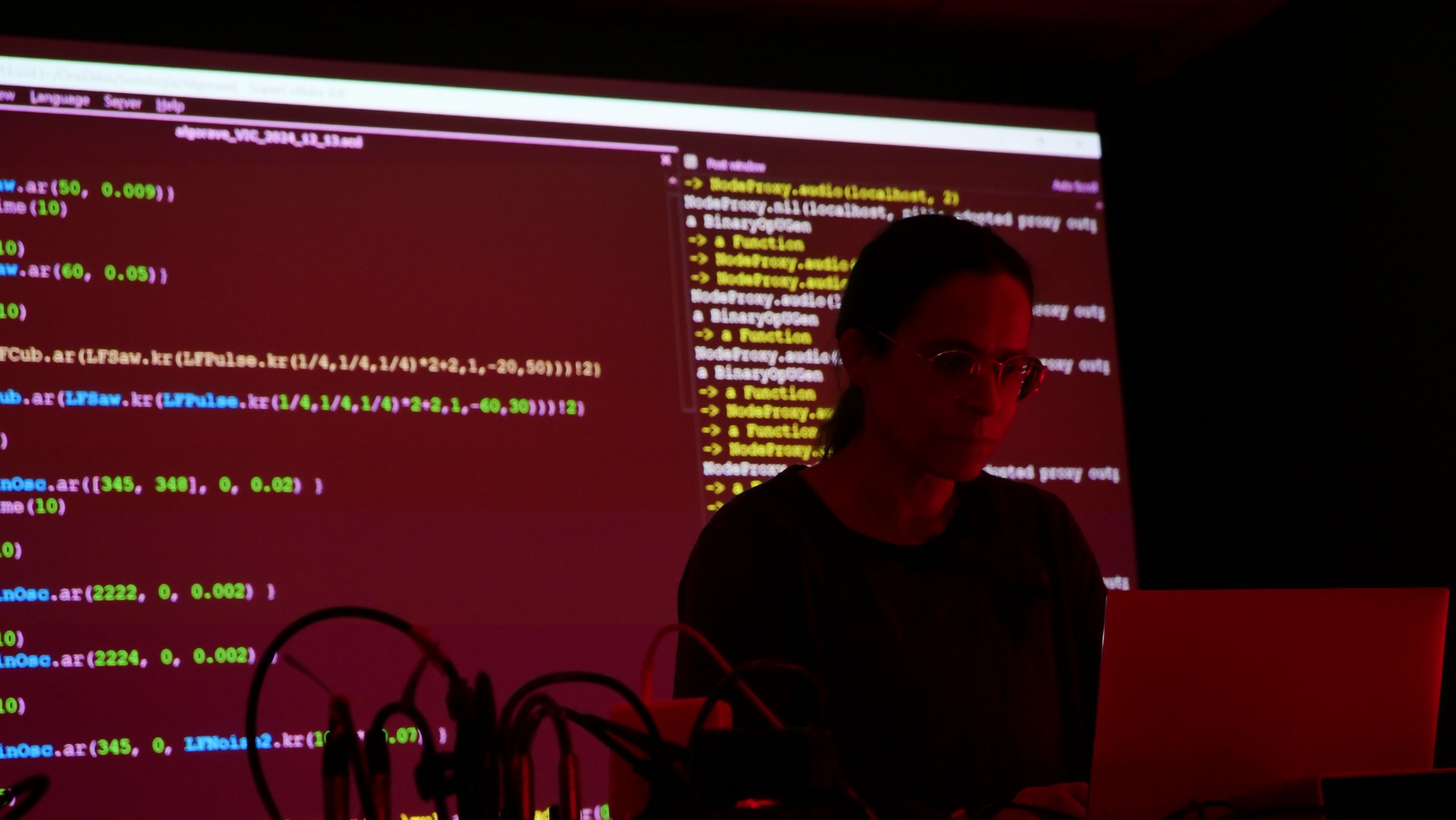 Before the official founding of the collective, there were three algoraves. The first one was organized by Lina Bautista after the live.code.festival (which was held in Karlsruhe) on December 1, 2013. At the time, she had a group called Codetroller, arguably one of the first live coding groups in Barcelona. The other two were organized in October, 2016, and July, 2017, in collaboration with Iván Paz, and Niklas Reppel, who moved from Karlsruhe to Barcelona at the start 2017. The last of the three happened in conjunction with a TidalCycles workshop by Alexandra Cárdenas. These events were key moments that created the foundations of what would later become the TOPLAP Barcelona residency at Hangar, a centre for art research and production. Apart from live coders performing music and visuals, these events also featured people using modular synths (Barcelona has a strong modular synth community).
