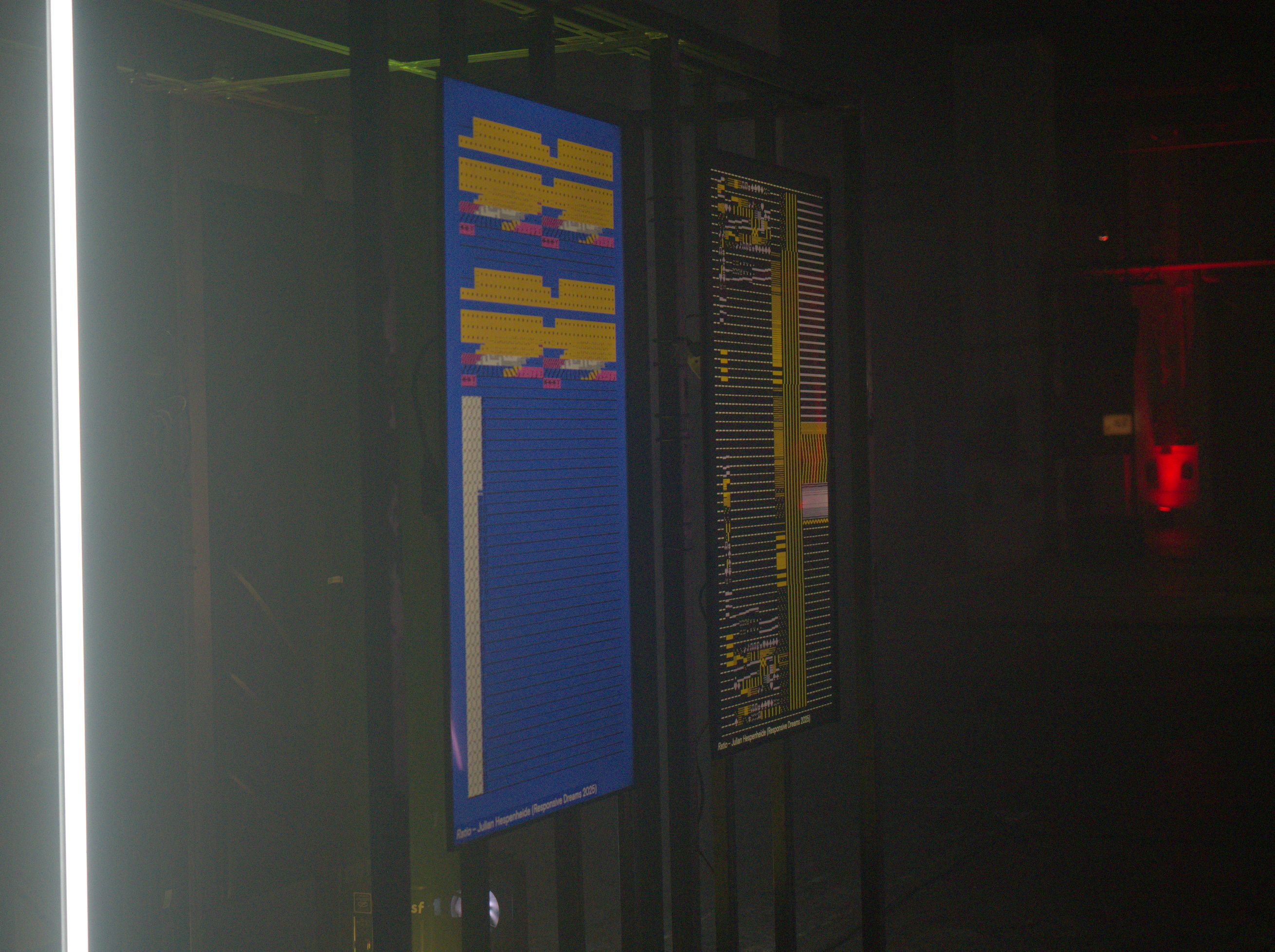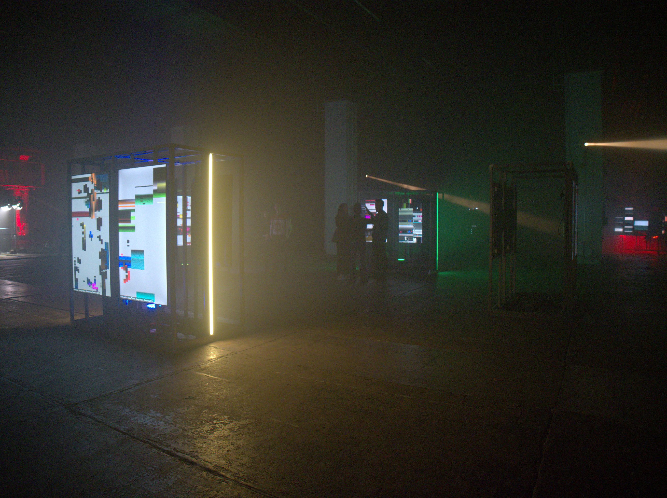 The Generative Art Museum presented "Generative Dialogues" at MIRA Festival, a digital arts and contemporary music festival held annually in Barcelona since 2011. Generative Dialogues featured Julian Hespenheide, Andy Duboc, Anna Carreras, lilcode, Kim Asendorf, Andreas Gysin, Anna Lucia, Galo Cañizares, Princess Tutti & Shaderism. The installation consisted of four metallic structures, each supporting four screens powered by four high-resolution computers. Together they generate the computational energy behind generative algorithms displayed across sixteen synchronized screens. This constellation becomes a silent conversation, a dialogue between machine and human, between algorithm and perception, allowing the beauty of generative processes to speak without a single word.